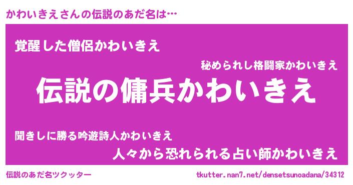 | ヒーロー風カッコイイあだ名 | 『スーパーカワイキエ』『暗黒騎士カワ』 |