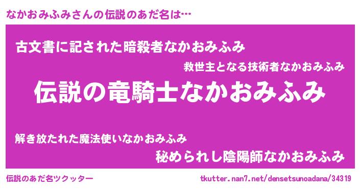 | 男性向けラノベタイトル風あだ名 | 『なかおみふみの憂鬱』 |