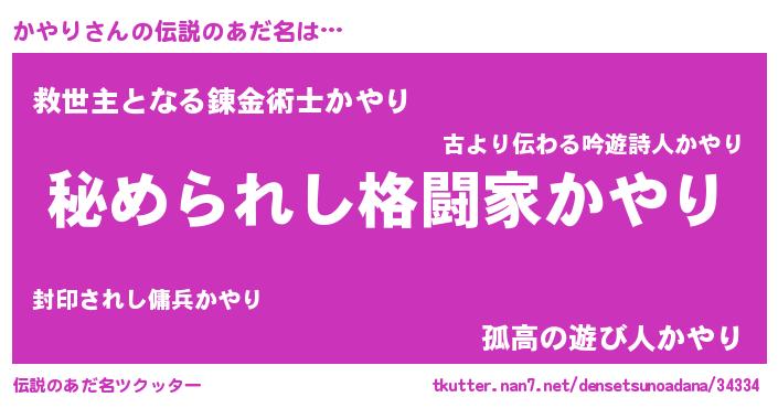 | 女子向けラノベタイトル風あだ名 | 『かやりの雑貨屋さん』『闇のかやり』 |
