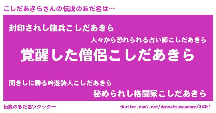 | ヒーロー風カッコイイあだ名 | 『幻影騎士コシ』『スーパーコシダアキラ』 |