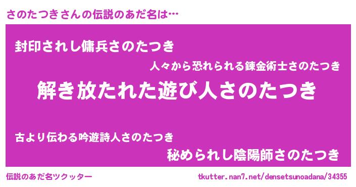 | 意味不明あだ名 | 『住所不定無職さのたつき(74歳)』 |