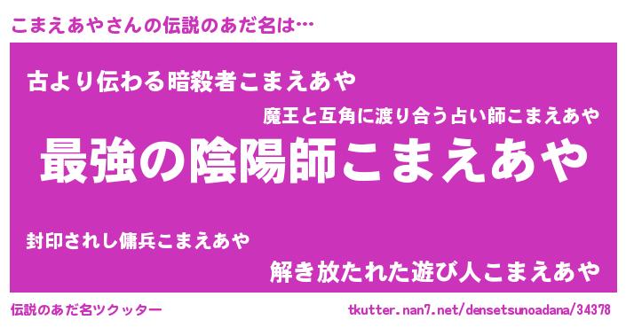 | 意味不明あだ名 | 『自称こまえあや』『永久保存こまえあや』 |