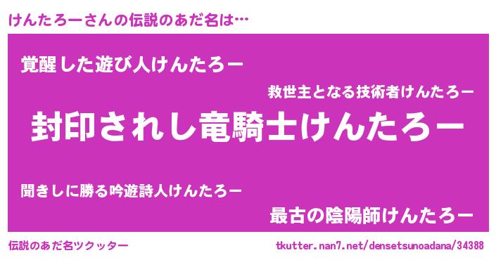 | 男性向けラノベタイトル風あだ名 | 『けんたろーに滅ぼされるだけの簡単なお仕事です』 |