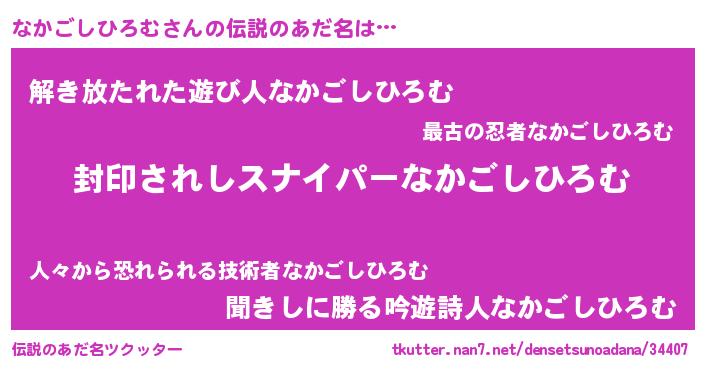 | 男性向けラノベタイトル風あだ名 | 『ナカゴシヒロムアートオンライン』 |