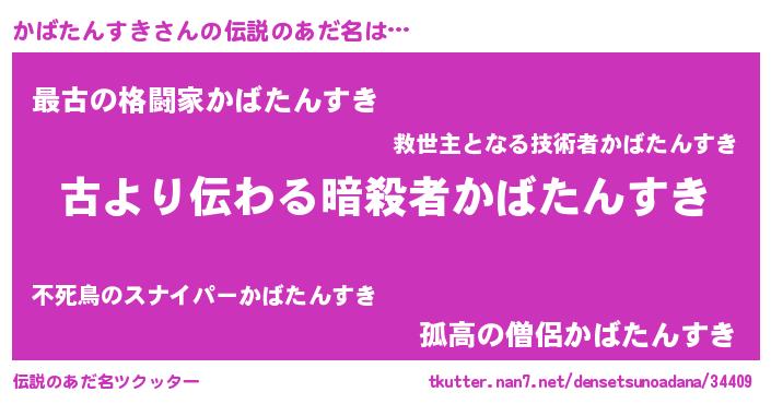 | 意味不明あだ名 | 『住所不定無職かばたんすき(50歳)』 |