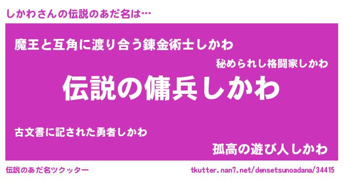 | ヒーロー風カッコイイあだ名 | 『スーパーシカワ』『天空の使者しかわ』 |