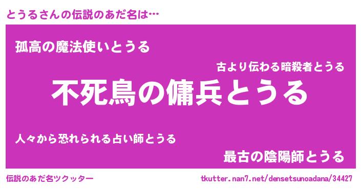 | 男性向けラノベタイトル風あだ名 | 『とうるの憂鬱』『魔法科高校のとうる』 |