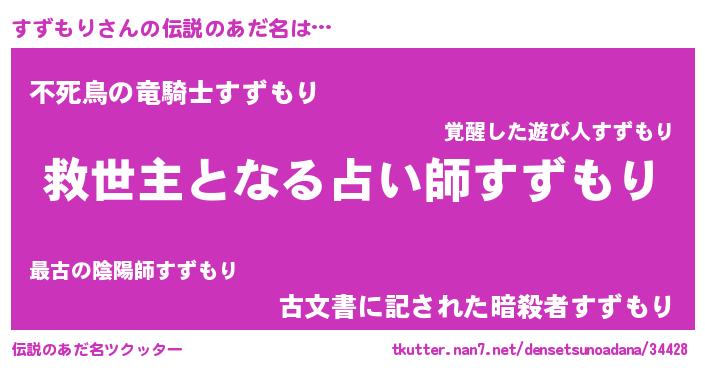 | ヒーロー風カッコイイあだ名 | 『慈愛の使者すずもり』『ネオスズモリ』 |