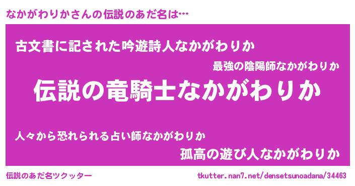 | ヒーロー風カッコイイあだ名 | 『ウルトラ戦士ナカガワリカ』 |