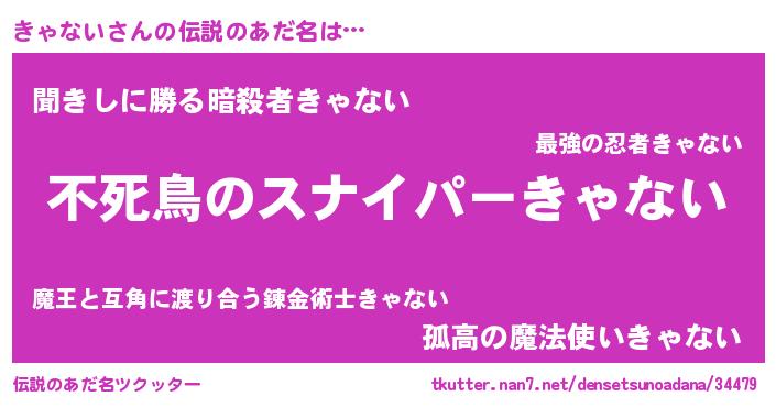 | ヒーロー風カッコイイあだ名 | 『仮面キャダー』『最強戦士キャナイ』 |