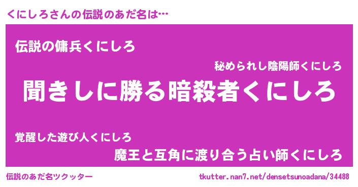 | 男性向けラノベタイトル風あだ名 | 『クニシロスレイヤー』 |