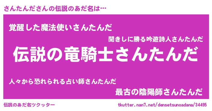 | 女子向けラノベタイトル風あだ名 | 『さんたんだが死なない童話 林檎のさんたんだの診療簿』 |