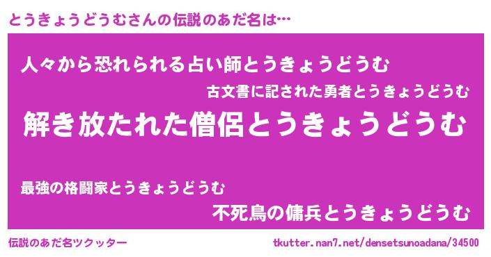 | 意味不明あだ名 | 『とにかく怪しいとうきょうどうむ』 |