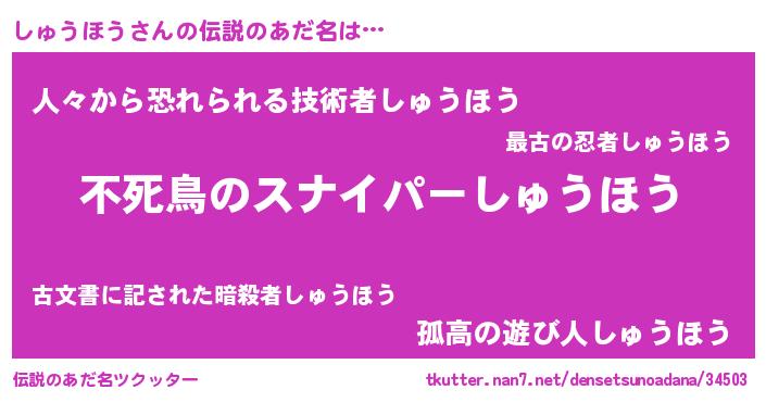 | ヒーロー風カッコイイあだ名 | 『最強戦士シュウホウ』『黄金騎士シュ』 |
