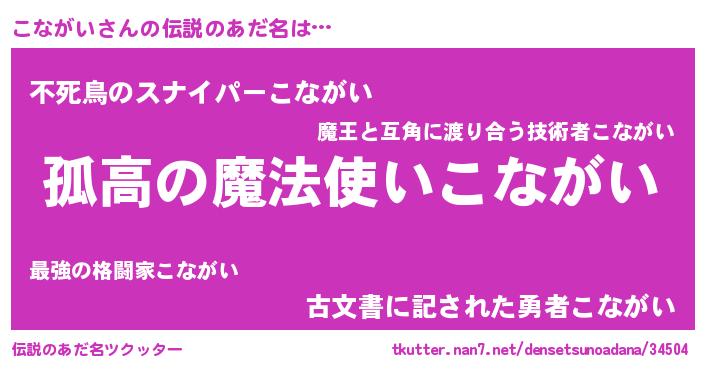 | 意味不明あだ名 | 『とにかく怪しいこながい』 |
