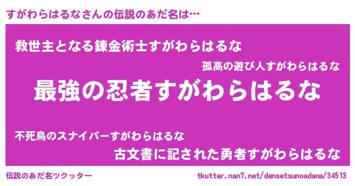 | ヒーロー風カッコイイあだ名 | 『ウルトラすがわらはるなマン』 |