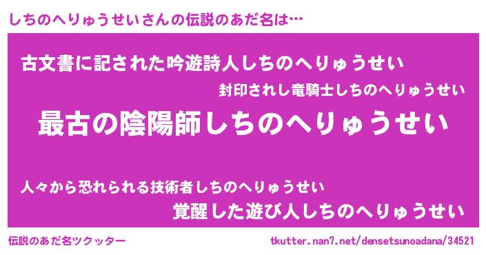 | 意味不明あだ名 | 『しちのへりゅうせいフォーエバー』 |
