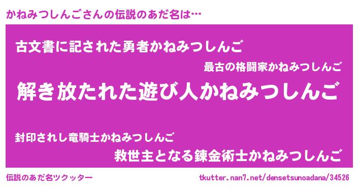 | 意味不明あだ名 | 『とにかく怪しいかねみつしんご』 |