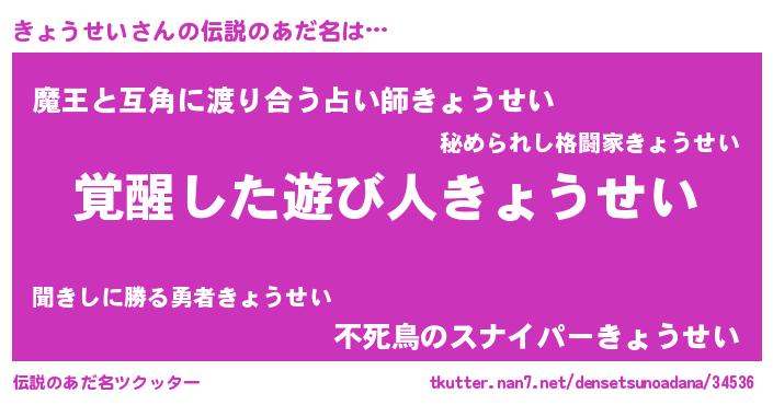 | 欧米人風あだ名 | 『きょうせい・ステッグマイヤー』 |