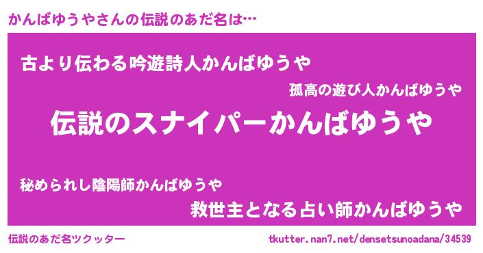 | 胡散臭い通販商品みたいなあだ名 | 『必ず成功する霊験あらたかなお札…その名も「かんばゆうや」』 |
