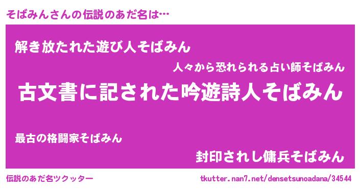 | 意味不明あだ名 | 『永久保存そばみん』『自称そばみん』 |
