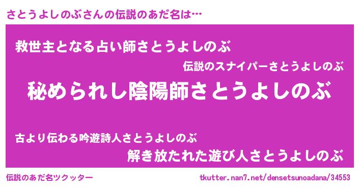 | 意味不明あだ名 | 『しいたけ科さとうよしのぶ属』 |