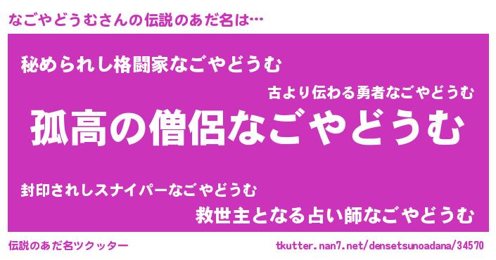 | ヒーロー風カッコイイあだ名 | 『暗黒騎士ナゴ』『仮面ナゴダー』 |