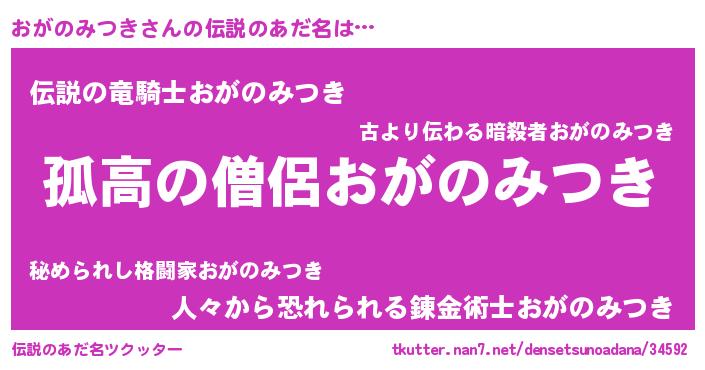 | 意味不明あだ名 | 『自称おがのみつき』 |