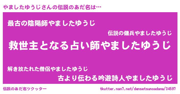 | 男性向けラノベタイトル風あだ名 | 『この素晴らしい世界にやましたゆうじを!』 |