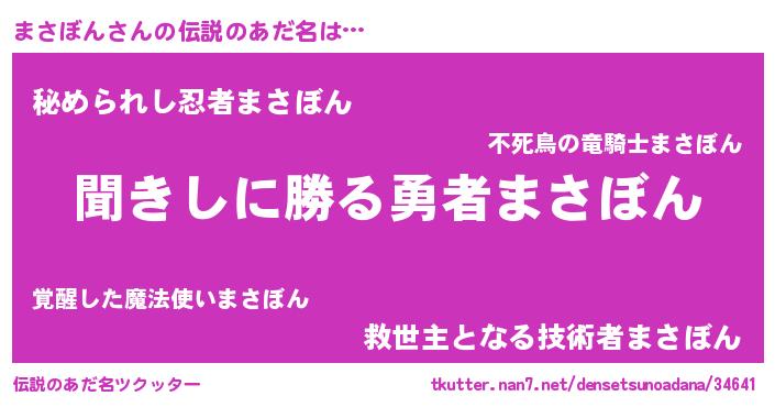 | ヒーロー風カッコイイあだ名 | 『ネオマサボン』『究極戦士マサボン』 |