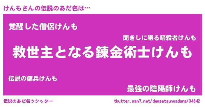 | 意味不明あだ名 | 『眠気覚ましガムけんも味』『自称けんも』 |
