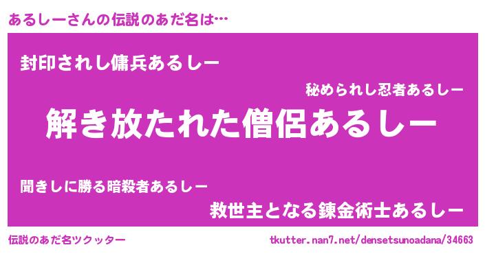| 女子向けラノベタイトル風あだ名 | 『あるしーの卵を拾いまして』 |