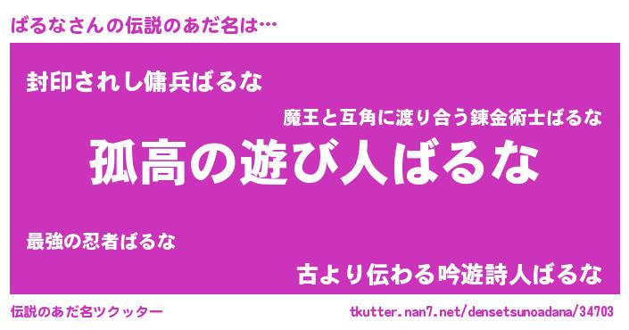 | 意味不明あだ名 | 『とにかく怪しいばるな』『自称ばるな』 |