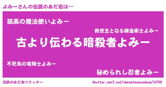 | ファンタジー風あだ名 | 『ヨミディッシュ』『ゼヨミトゥ』 |