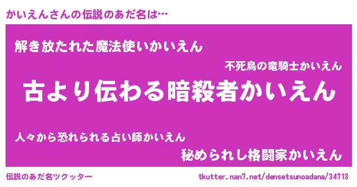 | 意味不明あだ名 | 『自称かいえん』『永久保存かいえん』 |