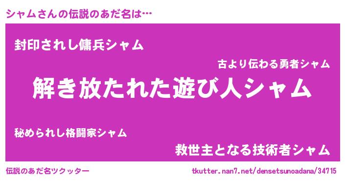 | 意味不明あだ名 | 『とにかく怪しいシャム』『自称シャム』 |