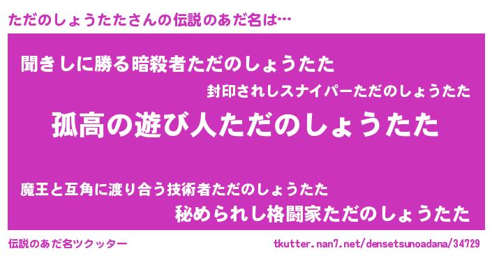 | ヒーロー風カッコイイあだ名 | 『暗黒騎士タダ』『ネオタダノショウタタ』 |