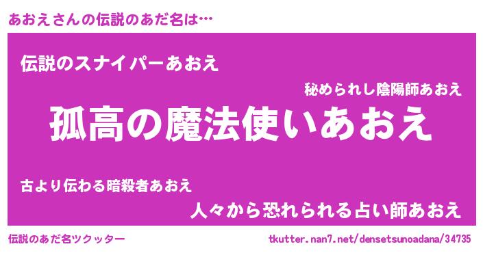| 男性向けラノベタイトル風あだ名 | 『アオエスレイヤー』『あおえの憂鬱』 |