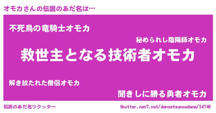 | ヒーロー風カッコイイあだ名 | 『慈愛の使者オモカ』『スーパーオモカ』 |