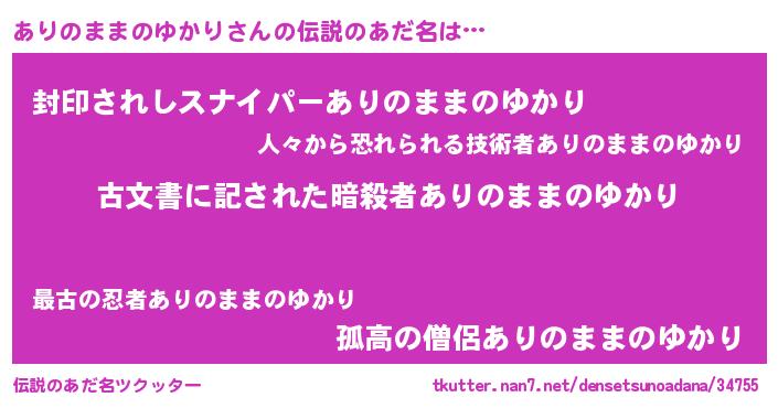 | ヒーロー風カッコイイあだ名 | 『ネオアリノママノユカリ』 |