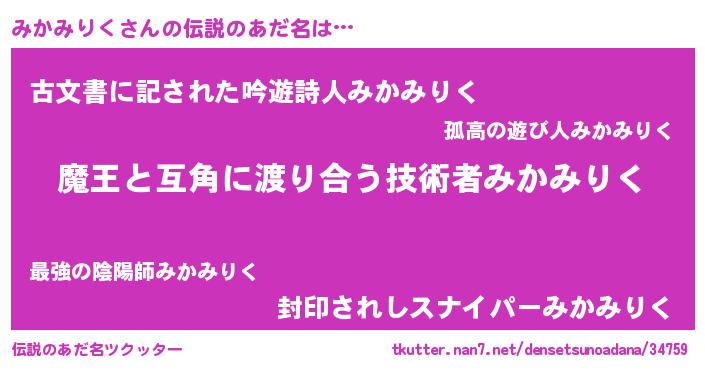 | ヒーロー風カッコイイあだ名 | 『愛の使者みかみりく』『仮面ミカダー』 |