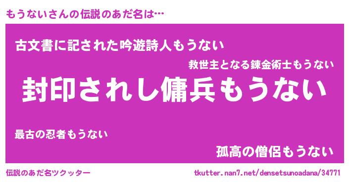 | 胡散臭い通販商品みたいなあだ名 | 『億万長者になれる水晶球…その名も「もうない」』 |