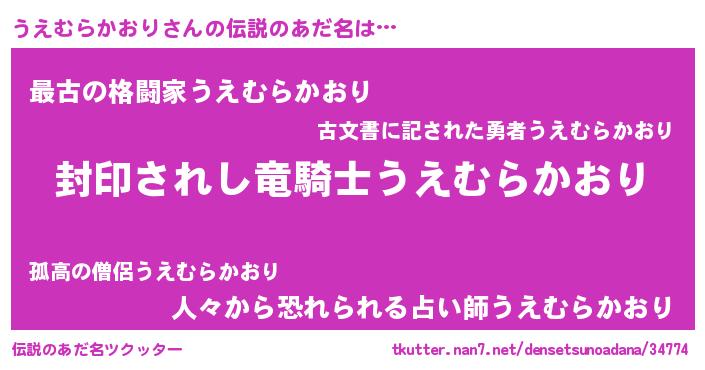 | 男性向けラノベタイトル風あだ名 | 『ウエムラカオリアートオンライン』 |