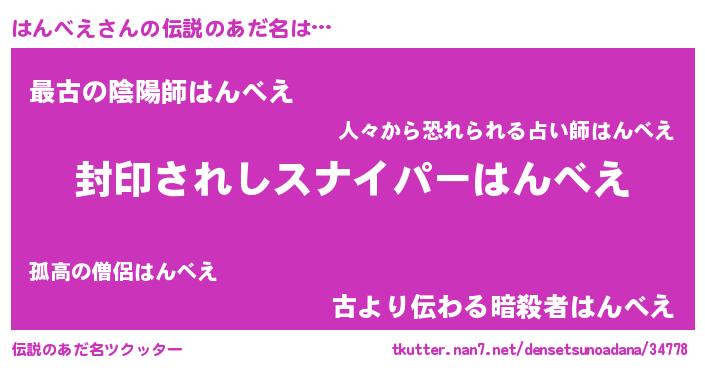| 胡散臭い通販商品みたいなあだ名 | 『億万長者になれる霊験あらたかなお札…その名も「はんべえ」』 |