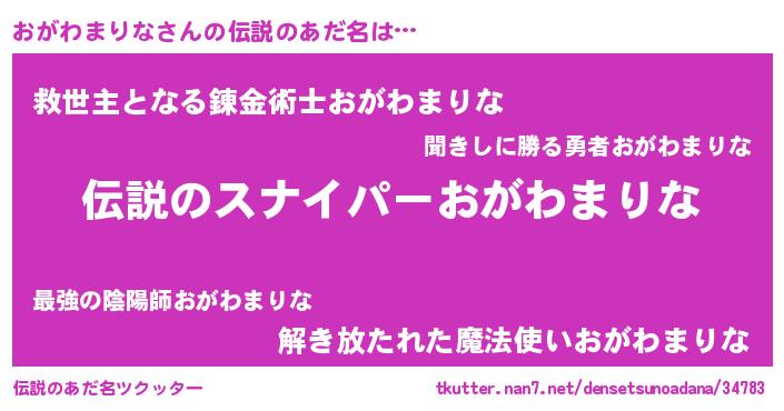 | 胡散臭い通販商品みたいなあだ名 | 『必ず成功する霊験あらたかなお札…その名も「おがわまりな」』 |