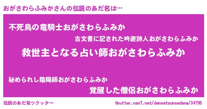 | 男性向けラノベタイトル風あだ名 | 『ノーゲーム・ノーオガサワラフミカ』 |