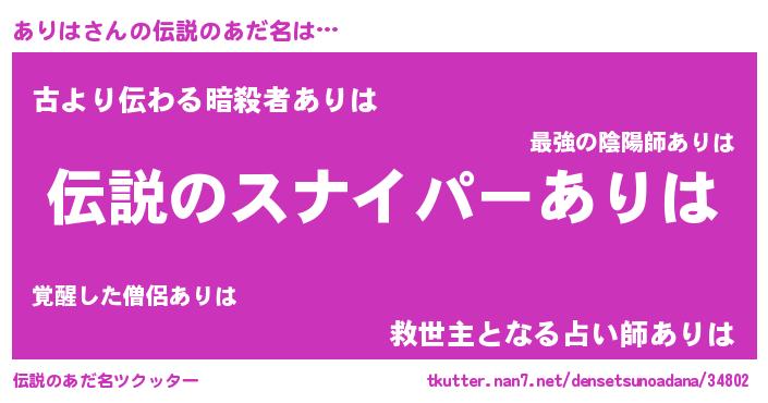 | 胡散臭い通販商品みたいなあだ名 | 『必ず成功する霊験あらたかなお札…その名も「ありは」』 |