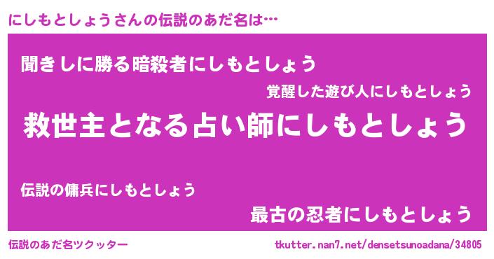 | 男性向けラノベタイトル風あだ名 | 『ノーゲーム・ノーニシモトショウ』 |