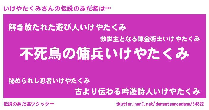 | 意味不明あだ名 | 『自称いけやたくみ』 |