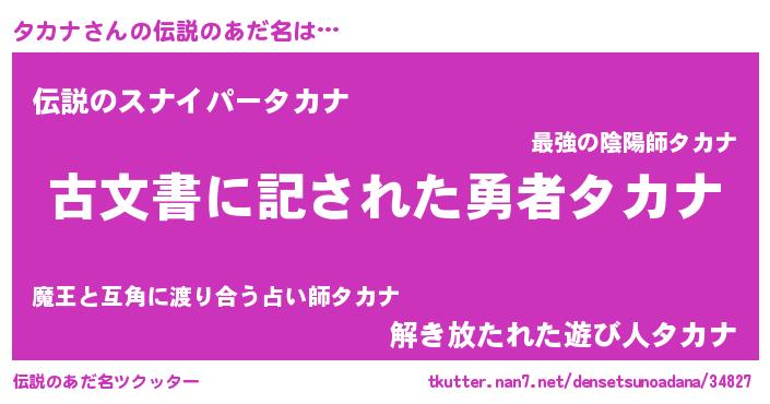 | 意味不明あだ名 | 『永久保存タカナ』『自称タカナ』 |